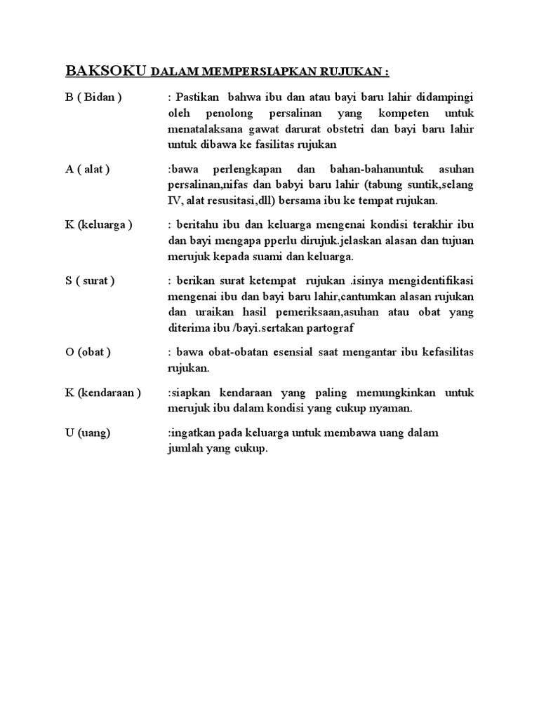 BAKSOKUDA Persiapan yang harus diperhatikan dalam melakukan rujukan disingkat BAKSOKUDA yang diartikan sebagi berikut. Ditulis oleh Karinta Ariani Setiaputri Diperbarui Jun 29 2021 Ditinjau secara medis oleh dr. Riwayat seksio sesaria 2.